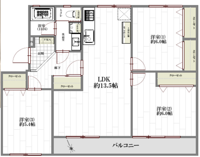 ・南西向き陽当り良好!13.5帖LDK