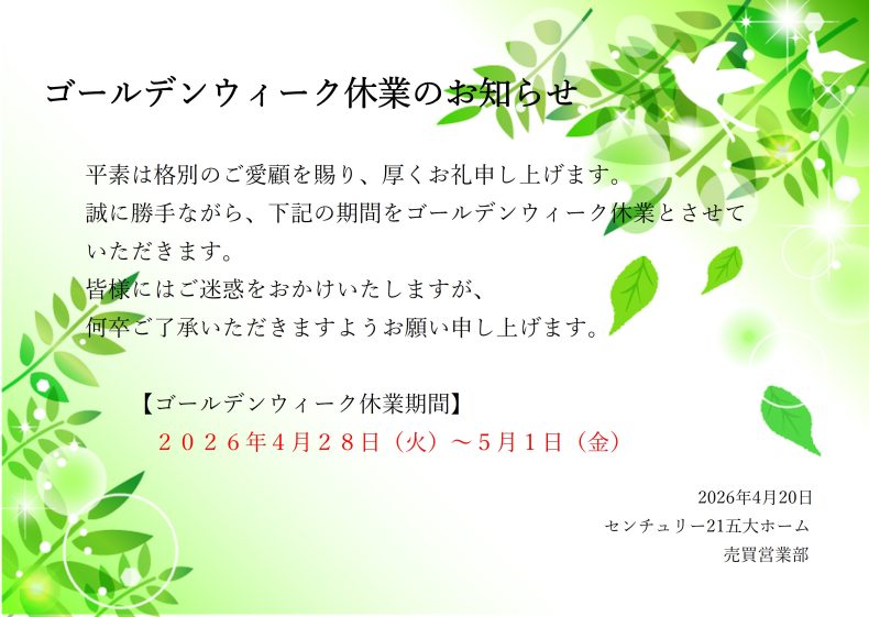 【ゴールデンウィーク休業期間】